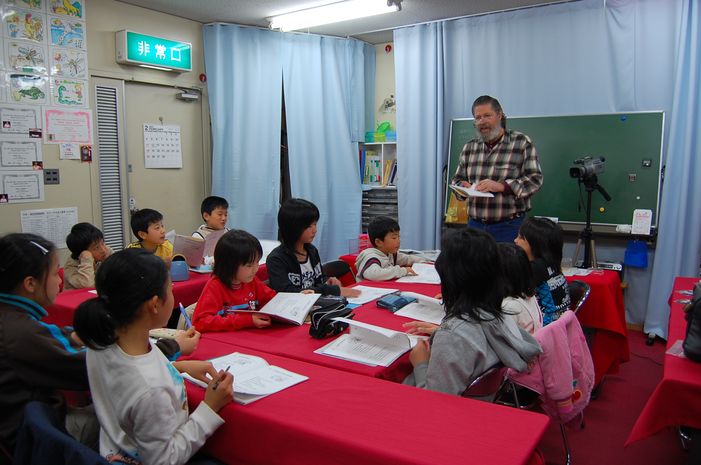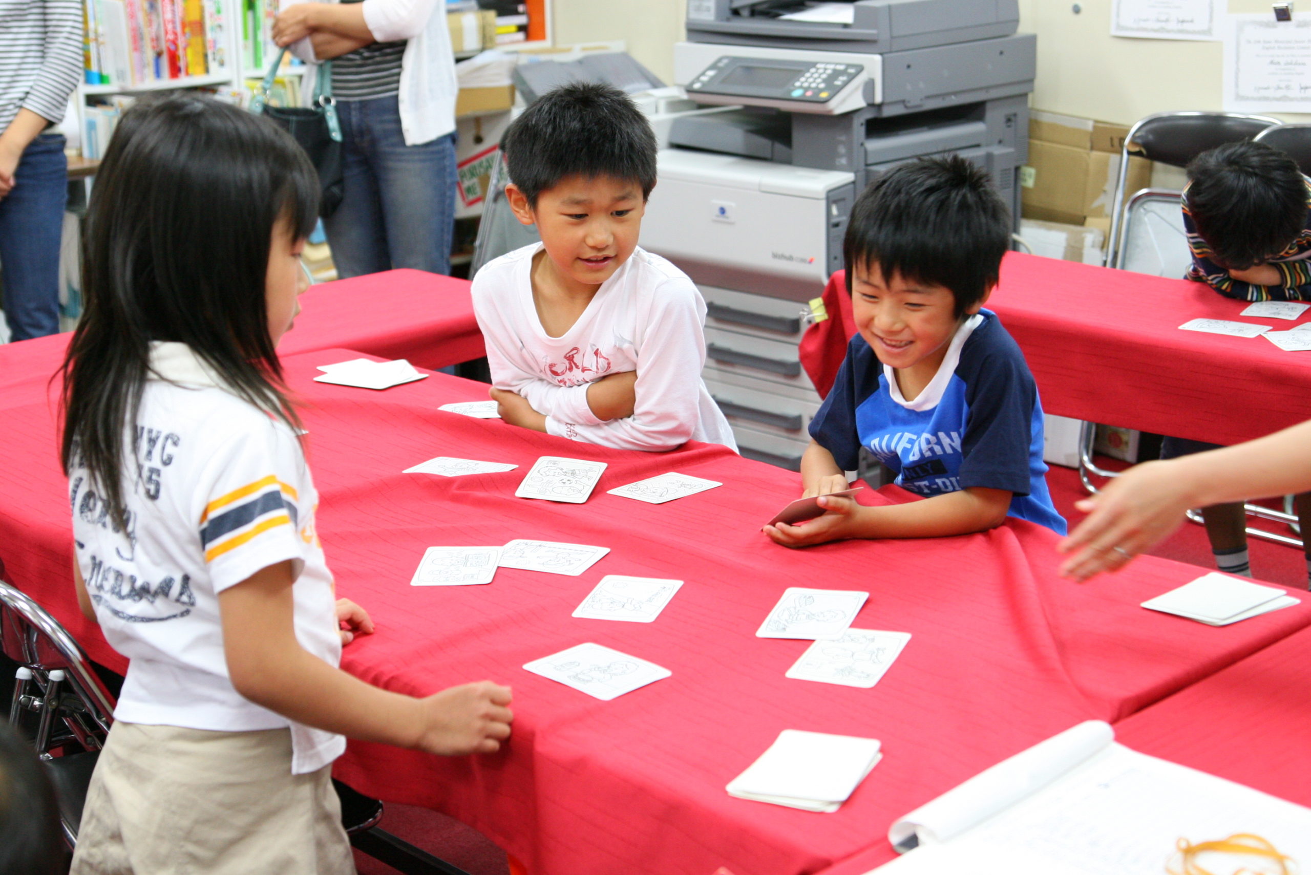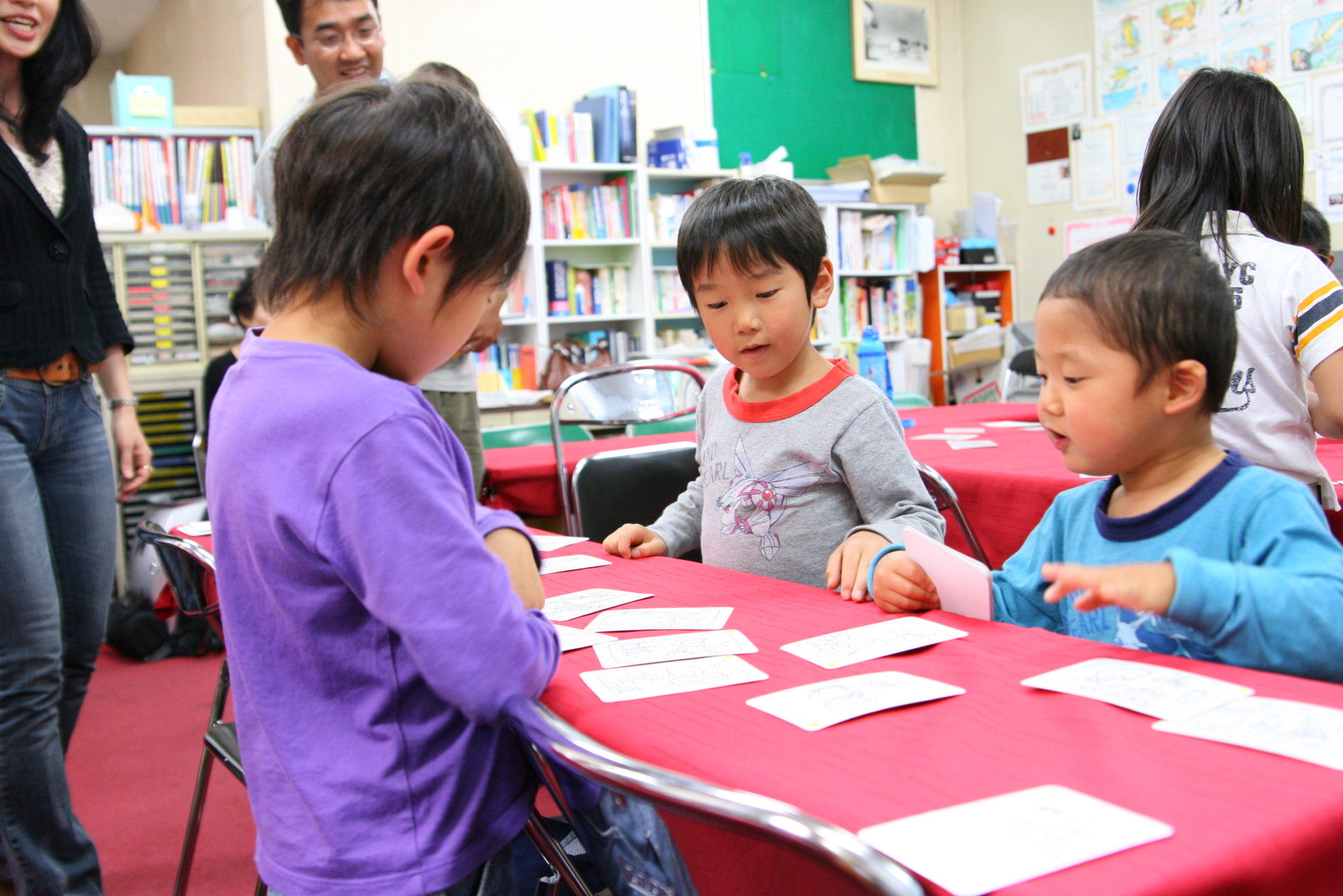 1988年(昭和63年)から始まったまねび学園では一見、子どもたちが英語のカルタや紙芝居で遊んでいるようです。しかし実は、英語のシャワーを浴びながら、コトバを丸ごと模倣し、イメージ化し、 “英語で英語がわかる”というウルトラCの早業をやっているのです。英語の海で遊んでいるうちに、水に浮くコツを覚え、やがてひとりでに泳ぎだす。 まねびてつろう×ルーブによって生まれた新しい英語学習SST(サウンド・シャワー・テクニック)メソッドとは、そんな指導法です。